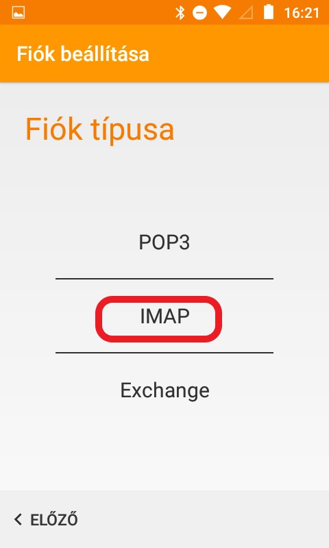 3. Adja meg a fiók típusát, ami ebben az esetben IMAP
