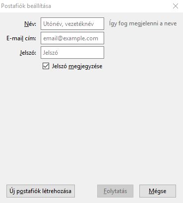 1. A letöltés után indítsuk el a levelezőprogramot, majd kattintsunk az „Új postafiók létrehozása” menüpontra.