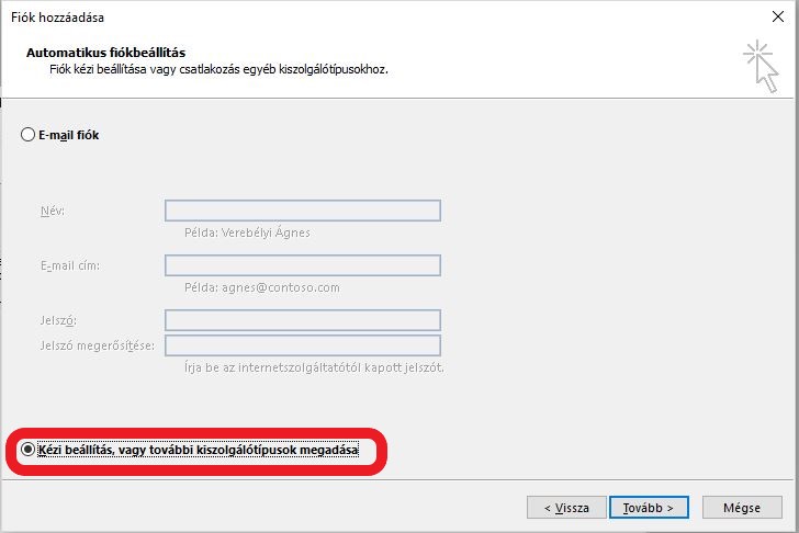 2. A két lehetőség közül válasszuk a „kézi beállítás” opciót. Majd kattintsunk a „Tovább” gombra.
